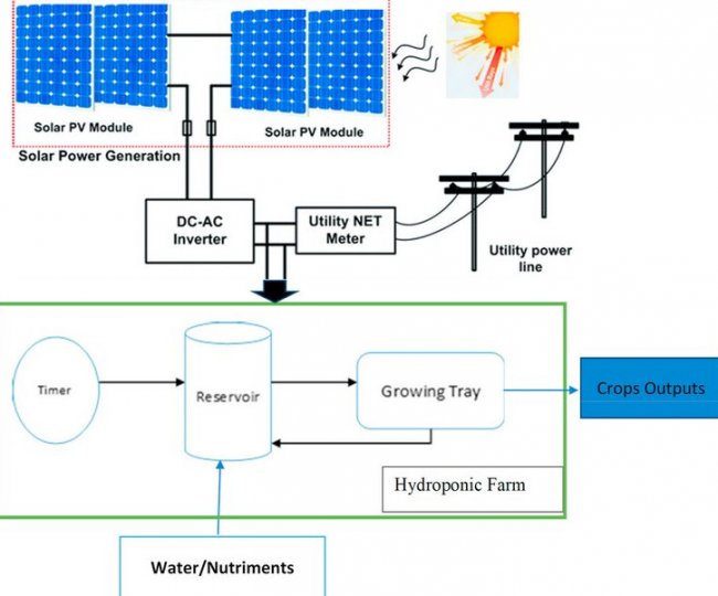 В ходе научной работы было исследовано, как многопериодная гидропонная система растениеводства может быть объединена с фотоэлектрической системой при различных стимулах, таких как программы льготных тарифов (FIT), системах Net Metering и улучшенных электрических тарифов (IET), которые заключаются в простом повышении цен на электроэнергию для потребителей или сокращении существующих субсидий к цене на электроэнергию.