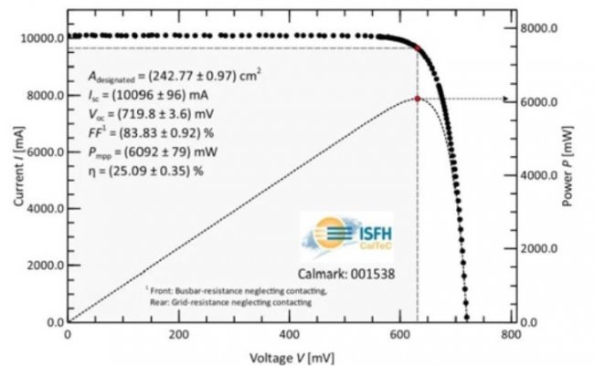 Демонстрирующая рекордный КПД разработка представляет собой двухсторонний фотоэлемент n-типа. Он выполнен на основе пластины из монокристалла кремния с применением TOPCon (пассивированных туннельным оксидом контактов). По заявлению Longi, это первая в мире TOPCon-ячейка пригодного для промышленного производства размера, эффективность которой превышает 25%.
