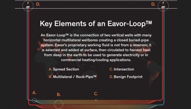 Крупнейшие нефтегазовые корпорации BP и Chevron возглавили раунд инвестиций в размере 40 миллионов долларов США в канадскую компанию Eavor, которая разработала уникальный способ извлечения геотермальной энергии. Он позволяет обеспечить циркуляцию переносящей тепло жидкости без получения питания извне.