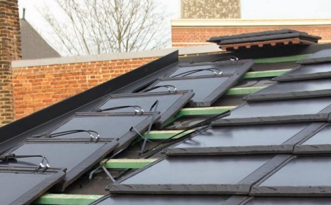 Причем у самой большой черепицы есть электрическая модификация Solar Flat-5XL. Это ультраплоская керамическая плитка, объединенная с фотомодулями с двойным стеклом. Сверху на панели — антибликовое черное покрытие, благодаря которому наличие фотоэлектрических элементов незаметно.