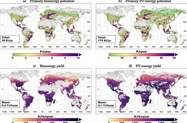 Исследователи заявляют, что полноценное эксплуатация неиспользуемых сейчас земель позволит ежегодно получать 179 эксаджоулей (49 722 тераватт*ч) энергии с помощью фотоэлектрических установок и 35 эксаджоулей (9 722 тераватт*ч) — за счет технологий биоэнергетики.