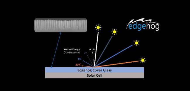 Покрытие Edgehog получено с применением передовых знаний в сфере нанотекстур и нанотехнологий, позволяющих формировать его непосредственно на стекле, причем в промышленных масштабах. «Это важный прорыв, который был достигнут только недавно, открывает новую эпоху в области просветления оптики, — добавил Дозу. — Edgehog объединила целый ряд ноу-хау, чтобы создать «элюминарное» стекло для солнечных батарей — наноструктуру непосредственно на стекле, которая позволяет ему пропускать свет, падающий под любым углом».