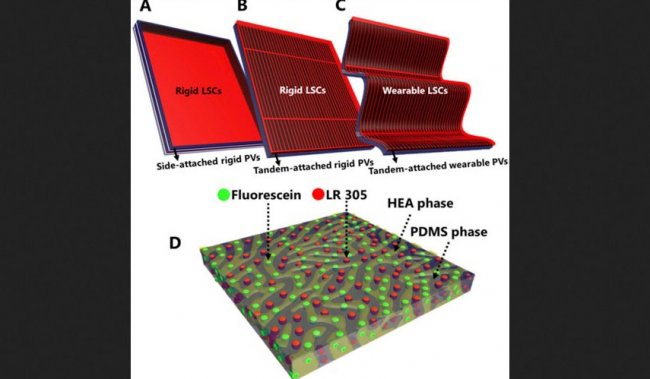 Существующие LSC — это жесткие, не пропускающие пар и влагу устройства, поэтому они не подходят для использования в одежде. Но исследовательской группе под руководством Лучано Бозеля из Лаборатории биомиметических мембран и тканей удалось разработать люминесцентный солнечный концентратор, лишенный этих недостатков.