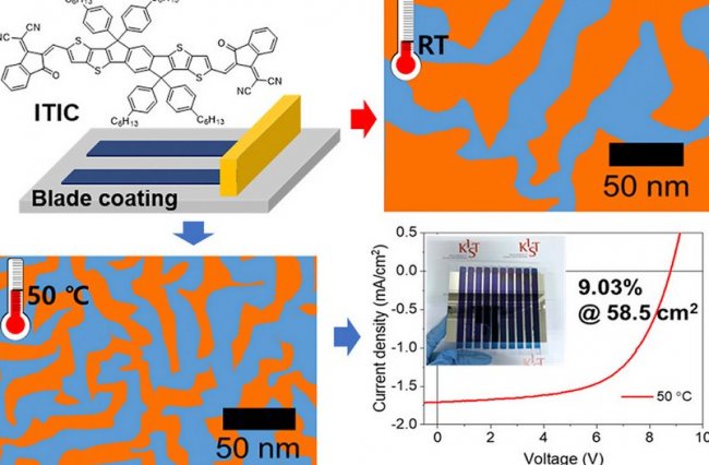 Ученые во главе с доктором Хэ Юнг Сон определили механизм возникновения проблем. Было установлено, что при обработке большой площади из-за более медленного испарения растворителя в фотоэлектрическом веществе образуются объединения частиц, а также протекают другие процессы, приводящие к снижению эффективности фотоэлемента.