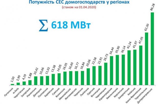 В частности, в I квартале 2020 в частных домовладениях было установлено более 2100 генерирующих станций на солнечных батареях общей мощностью 65 МВт. Это в 1,5 раза больше, чем за аналогичный период 2019 года.