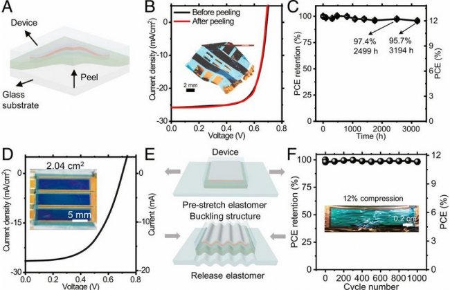 В статье Joule исследователи рассказали о механически прочных фотопоглощающих материалах, которые могут применяться для производства эластичных солнечных элементов. Эти устройства могут достигать эффективности преобразования энергии в 13% при сохранении производительности на уровне 97% после 1000 циклов изгиба, а также 89% после 1000 циклов растяжения.