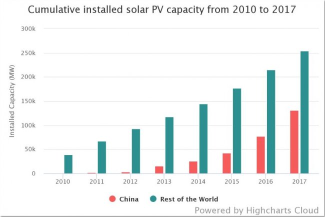 По предварительным данным, число солнечных установок за пределами Китая увеличилось в 2019 на 53 процента, IHS Markit прогнозирует также «двухзначный рост» и в этом году, хотя точные цифры не называет. Напомним, Китай выполнил план на 2020 год еще в 2017-ом, а по итогам 2018-го общая мощность фотоэлекрических станций в стране превысила 174 ГВт.