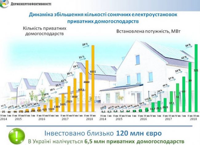 Общая установленная мощность солнечных станций частных домохозяйств возросла до 121 МВт, что составляет 10% от всей вырабатываемой в Украине солнечной энергии.