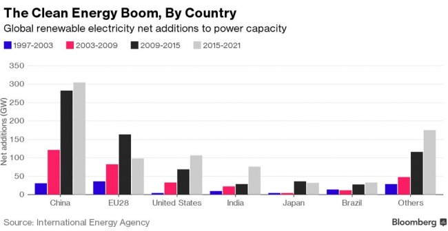 По данным отчета Международного энергетического агентства, глобальные источники «зеленой» энергии производят электроэнергии больше на рекордные 153 гигаватт.