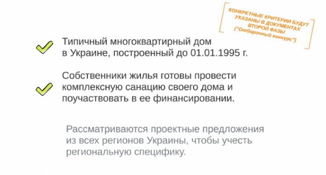 С 7 марта 2016 года стартовала первая фаза приема заявок на участие в конкурсе модельных проектов комплексной модернизации многоквартирных домов. В 2016 году в рамках инициативы «Энергоэффективность в Украине» при поддержке правительства Германии, планируется провести термосанацию 20-25 домов. Конечный срок подачи заявок - 20 марта 2016.