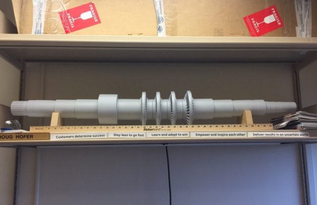 Когда же потребителям сети потребуется дополнительная энергия уже после захода солнца, нагретый солевой раствор поступает к «углекислому» льду и разогревает его до «сверхкритичного» состояния – между жидкостью и газом. В этом состоянии CO2 направляется на разработанную GE турбину и приводит ее в движение. В итоге «солнечный ротор» (прототип которого представлен ниже), по словам производителя, будет способен генерировать электроэнергию, которой достаточно для обеспечения потребностей 100 тыс. домов.