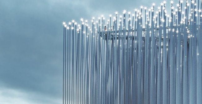 В Кремниевой долине может появиться футуристичная башня-электрогенератор. Самая необычная часть конструкции, получившей название Breeze of Innovation — пятьсот подвижных стержней, расположенных по ее периметру. Как предполагается, они, колеблясь от воздействия ветра, будут вырабатывать электроэнергию для электроснабжения всей постройки, в том числе светильников, установленных на конце каждого стержня.