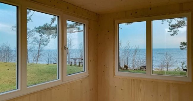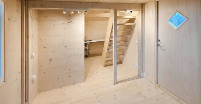 Дом в основном состоит из многослойных клееных деревянных панелей и снаружи окрашивается в любой цвет. Декоративная отделка внутри отсутствует. Но утилитарный интерьер не мешает жилищу от Brette Haus быть уютным и комфортным. Его можно оснастить, например, кухонным оборудованием из IKEA, системами «умного» дома, отоплением, солнечными батареями и аккумуляторами. В списке опций также присутствует установка постройки на колеса.