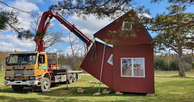 Латвийская компания Brette Haus разработала раскладывающийся деревянный дом, который не нуждается в фундаменте и устанавливается за три часа, то есть примерно в два раза быстрее, чем представленная в 2017 году модульная постройка M.A.Di. Сооружение может иметь разные планировки и оснащается всем необходимым для комфортного проживания, в том числе системами автономного энергообеспечения.