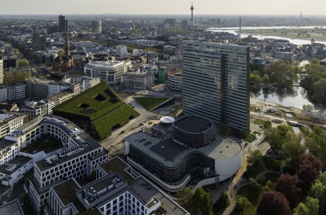 Бюро Ingenhoven Architects оживило центр города, реализовав проект многофункциональных зданий Kö-Bogen II. Центральной частью комплекса выступает большое сооружение высотой 27 м, которое выделяется масштабным озеленением фасада.