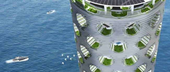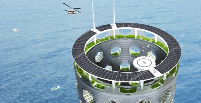 Проектировщики «идеального» города обещают, что он будет полностью автономным, а его жители смогут наслаждаться более здоровым образом жизни, чем те, кто живет на суше. Цилиндрические здания будут облицованы стеклами с фотоэлектрическими элементами и иметь гексагональные отверстия для циркуляции света и воздуха.