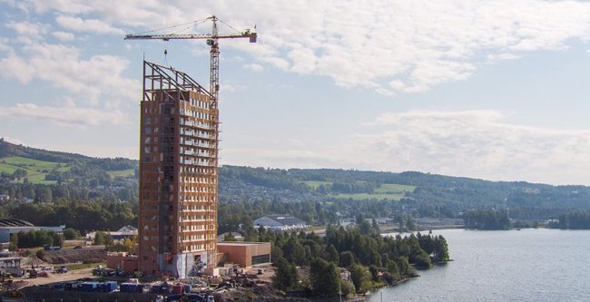 В марте 2019 года завершено строительство восемнадцатиэтажного здания Mjösa Tower, признанного самым высоким деревянным домом на планете. Его высота составляет 85.4 метра, что на 1.54 метра больше деревянной высотки HoHo Wien в Австрии и на десять метров больше румынского Peri-Săpânţa Monastery. Благодаря использованию в качестве основного строительного материала клееного бруса Kerto LVL новый деревянный небоскреб признан экологически чистым и безопасным сооружением.