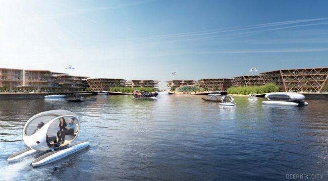 Часть зданий города на воде будет выступать и в качестве морских ферм для выращивания водорослей и моллюсков на подводной части платформы. Перемещаться между плавучими домами можно будет на легком электротранспорте, используя различные беспилотные технологии и шеринговые сервисы.