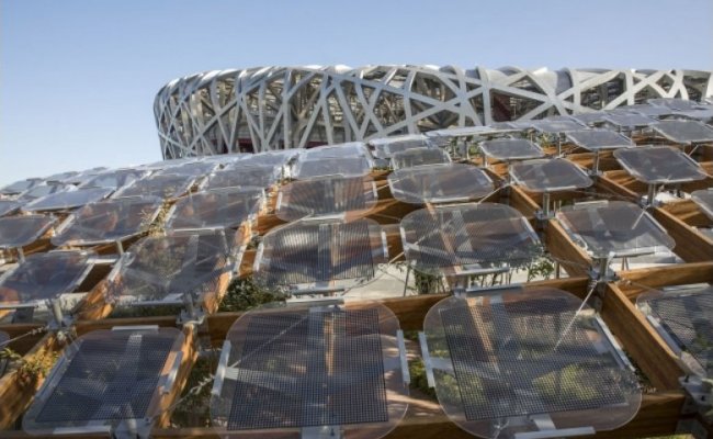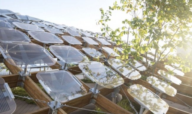 Обширная изогнутая крыша «Обитаемого сада» покрыта солнечными панелями Hanergy, причем углы наклона скатов просчитаны таким образом, чтобы обеспечить максимальную инсоляцию каждой панели в течение светового дня.