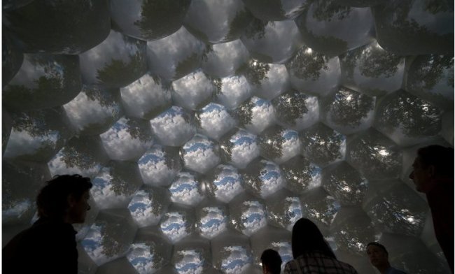 Внешне этот «аттракцион перспективы» выглядит как надувной геодезический купол, составленный из 109 небольших сегментов. Каждый такой гексагональный сегмент представляет собой камеру-обскуру.