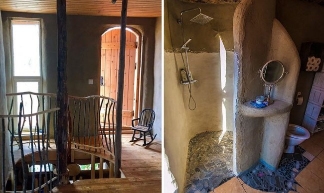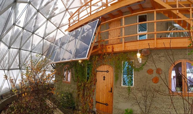 Непосредственно жилая постройка сооружена из экологически чистых материалов и, по сути, представляет собой саманный дом – его основными строительными компонентами стали глина, песок и солома. Стеклянный купол поверх экодома не только защищает его от сурового климата заполярья, но и создает внутри тепличные условия, позволяющие владельцам выращивать фрукты и овощи большую часть года. Возводить дом своей мечты норвежской семье помогали друзья и соседи.