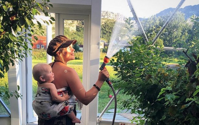 Вся использованная жителями дома вода подвергается рециклингу и идет на поливку огорода, из остатков пищи изготавливается компост, которым удобряется сад