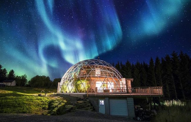 Благодаря прозрачному куполу обитатели экодома могут наслаждаться панорамными видами дикой природы и красотами северного сияния