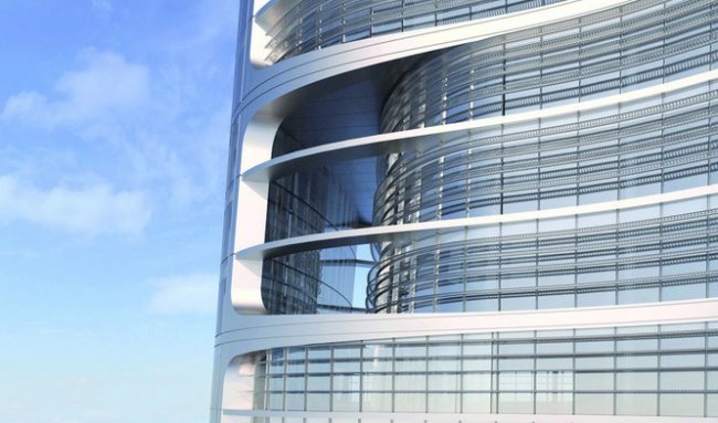 «Ребра» супернебоскреба выступают из его объема и покрыты гладкими стеклянными панелями. Фасады будут отделаны специальными фактурными компонентами. За их навесной стеной скрыта основа конструкции из композитного бетона и металлический остов.