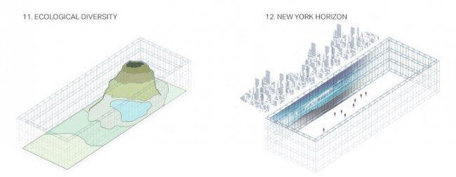 Дизайнеры Yitan Sun (Йитан Сан) и Джианши Ву (Jianshi Wu) разработали уникальный концепт, своеобразный микс ландшафтной архитектуры и «горизонтального» небоскреба. Идея заключается в том, чтобы на месте Центрального парка Нью-Йорка вырыть котлован до глубины скалистых пород и подземных водоемов, а по его периметру соорудить комплекс зданий с видами на просторы гор и озер, которые будут отражаться на зеркальной стене впадины.