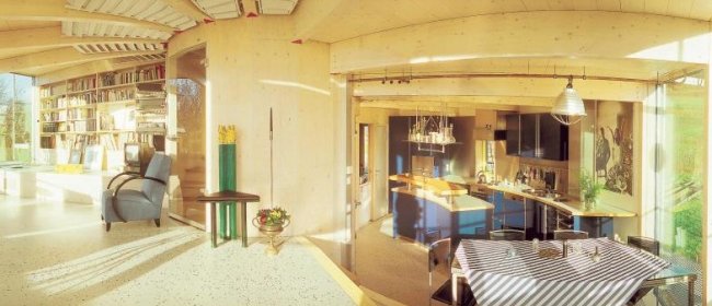 Диш позаботился, чтобы его дом не оказывал никакого влияния на окружающую среду, кроме эстетического. Дождевая вода собирается и фильтруется для бытовых нужд. Сточная вода очищается и спускается в пруд, расположенный за домом. Мусор перерабатывается на сухие дезодорированным смеси.