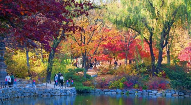 В Сеуле очень много деревьев, которые осенью радуют глаз яркими красками - от зеленого до золотого и алого. В мегаполисе расположены шесть больших парковых зон, включая Сеульский лес размещенных вблизи небоскребов, в которых размещаются офисы корпораций. У людей есть возможность выйти из сооружений из стекла и бетона и оказаться в парке возле водоема.