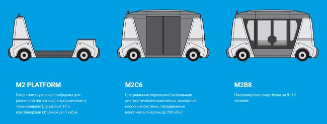 Концепт первого российского беспилотного автобуса был разработан компанией Volgabus, а точнее ее «дочкой» — компанией BMG (Bakulin Motors Group), которые являются резидентами Сколково. Автобус получил название «MatrЁshka». Он – часть модульного концепта, куда входят еще два варианта – открытая