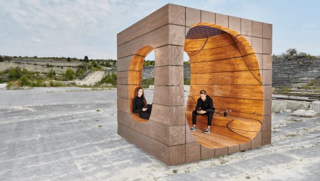Коллекция представляет собой удлиненные, волнообразные скамейки, похожие на шезлонги, и необычный «жидкий куб», выполненные из цельного дерева. За последние несколько лет Hello Wood уже успела удивить многими инновационными инсталляциями из дерева: от светодиодных рождественских елок, сделанных из многоразовых деревянных ящиков и целого комплекса «солнечного воркаута» до гигантских размеров тигра из отработанной древесины.
