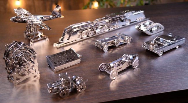 Цены на наборы 3D-конструктора из нержавеющей стали варьируются от 18 (визитница) до 112 долларов (поезд) и зависят от количества приобретаемых моделей: например, все 9 штук можно заказать за 432 доллара. Каждая модель поставляется в комплекте плоскогубцами с тонким носом и включает зубчатые передачи, механизмы и пружины, которые «оживляют» собранные поделки.