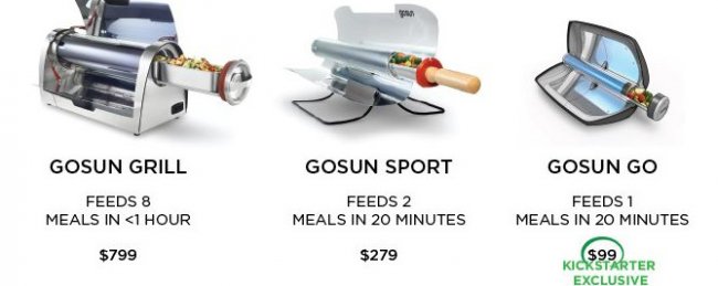Для того, чтобы сделать свой продукт максимально доступным, GoSun запустила на Kickstarter кампанию, где можно заказать минимальный комплект печи за $79, в который войдет буклет с рецептами и щетка для чистки. Семейство солнечных грилей включает и более мощные устройства, которые будут продаваться от $279 до $799.