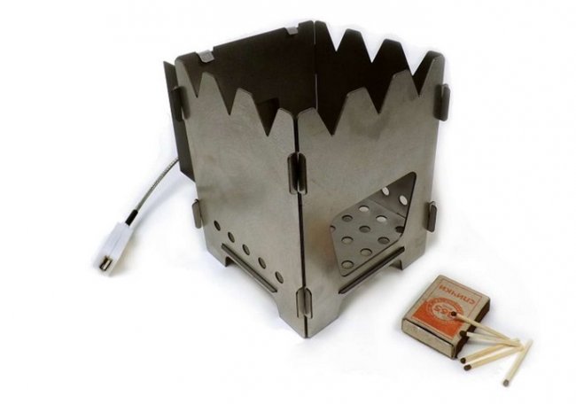 Tengu – это небольшая складная печь, в которой горит все то, что можно найти в лесу в большом количестве. Портативная мини-печь снабжена термогенератором, который аналогичен тем, что использует в своей технике NASA. Он напрямую преобразует тепло в электричество – без движущихся элементов. Встроенный контроллер заряжает любые гаджеты от разъема USB.