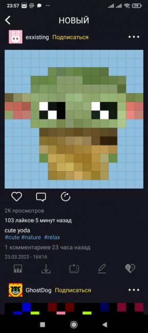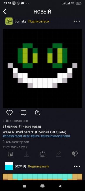 В центре нижней части главного экрана приложения Divoom находится то, что делает его светодиодную панель по-настоящему практичной — кнопка доступа в галерею готовых изображений. Галерея весьма обширная, все рисунки и анимации в ней бесплатные — и это огромный плюс рюкзака. Будем честны, нарисовать достойный пиксельный рисунок — это задача, с которой далеко не все готовы возиться. А большая галерея готовых рисунков позволяет подобрать картинки и ролики на свой вкус, среди них есть весьма забавные и стильные. Разрешение 16х16 требует определенной изворотливости от художника, но даже такой небольшой дисплей позволяет распознать на экране Малыша Йоду или Чеширского кота!
