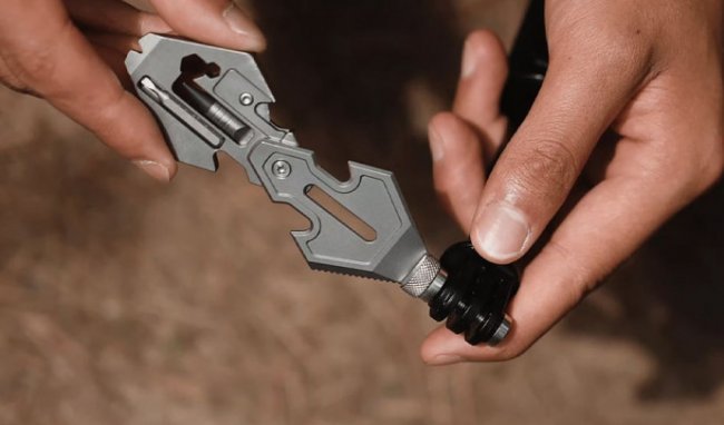Новинка уже появилась на платформе Kickstarter и располагает, по меньшей мере, 13 функциями. Мультитул, который можно носить на шее в качестве брелока или кулона, оснащен вечной ручкой и держателем для бит, ломиком и гвоздодером, открывалкой для бутылок и небольшой пилой.