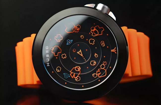 Главная особенность часов – их циферблат, который выглядит как сюрреалистическая зарисовка космического пространства. Секундная стрелка изображены в виде треугольного корабля, который «стреляет» снарядами, отмеряя время. Вместо часовой и минутной стрелок есть два внешних диска с изображениями астероидов. Разобраться в этой системе непросто, но часы спроектированы, чтобы радовать фанатов бренда, утилитарные функции в данном случае вторичны.