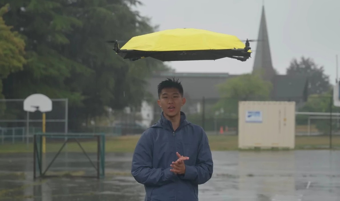 Идея зонта, который сам следует за человеком, перекочевала из фантастических фильмов в реальность благодаря изобретателю и ютуберу Джону Сюю с канала «I Build Stuff». Первая версия гаджета была представлена в 2024 году и представляла собой квадрокоптер, поднимающий над человеком купол зонта. Однако управлять им приходилось с помощью ручного контроллера, что делало устройство скорее эффектной игрушкой, чем практичным помощником. Критика зрителей была справедливой и конструктивной: им нужен был зонт, который следовал бы за владельцем автономно.