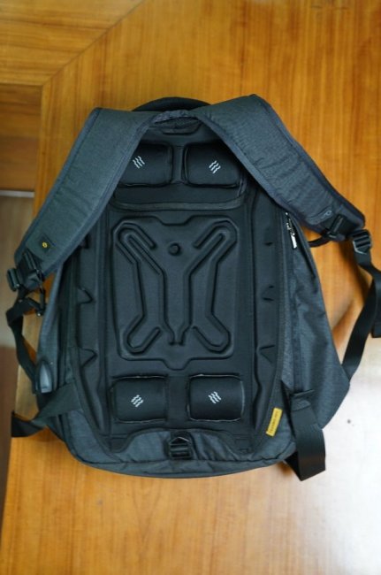 Рюкзак-массажер Eume выпускается в трех версиях – на 26, 27 и 42 литра. На нем помимо обычных для рюкзака карманов предусмотрен специальный отдел для современных гаджетов. Там без проблем могут разместиться 1-2 камеры, ноутбук, запасной аккумулятор, кабели и документы.