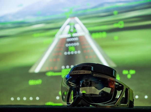 Skylens чем-то напоминают очки с козырьком, из которого дополнительная информация проецируется прямо на стекло. Во время полета перед глазами пилота будут необходимые данные о воздушном судне, благодаря чему он сможет меньше отвлекаться на приборы. А при плохой погоде Skylens помогут летчикам лучше ориентироваться в пространстве, что особо важно при взлетах и посадках.