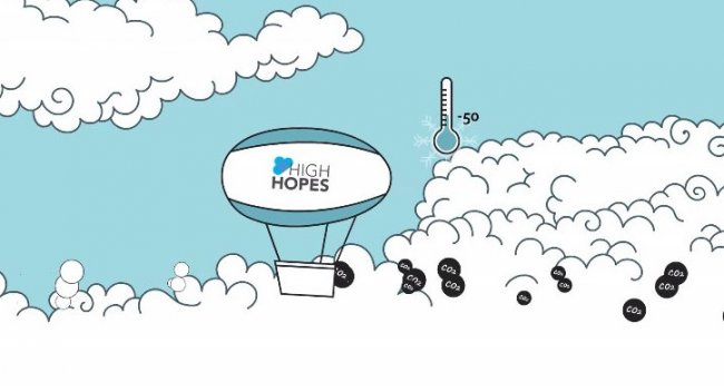 Наземные методы очистки воздуха дорого стоят в основном потому, что расходуют много энергии: на вентиляторы, нагреватели и компрессоры. Поэтому основатель High Hopes Эран Орен предлагает улавливать диоксид углерода не в форме газа, а в виде сухого льда, в который он превращается при температуре -80 °C. Не придется ничего нагревать или сжимать, расходы энергии минимальные. Необходимые условия встречаются в природе, например, в атмосфере на высоте 10-15 км над уровнем моря.
