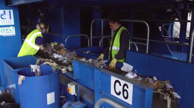 На Обуховском заводе отходы превращают в деньги – ежемесячно свыше тонн мусора попадает на сортировочную линию. Здесь работники вручную отсортировывают бумагу от пластика, который далее распределяется по цвету. Каждый месяц завод оплачивает государству миллион гривен налогов, однако такая деятельность не только прибыльная, но и экологичная, поскольку при подобной сортировке только 5% отходов поступает на мусорные свалки.