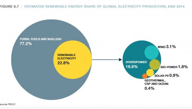 Доля возобновляемой энергетики в общемировом производстве электроэнергии, 2014 год