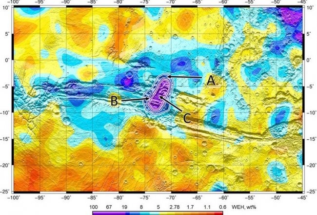 Ближе к экватору в почве у поверхности было обнаружено меньшее количество воды в виде льда или гидратированных минералов. Но недавно открытая залежь намного больше чем все, что было найдено до сегодняшнего дня.