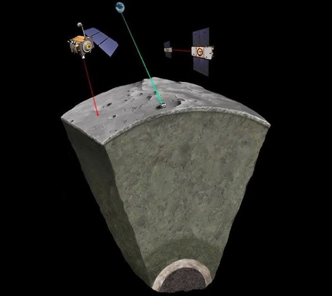 Оказалось, что наиболее вероятное строение Луны включает в себя наличие твердого ядра, окруженного слоем жидкой породы, поверх которого располагается толстый слой остывшей коры. Диаметр самого ядра оценивается в 258 км, диаметр внешней жидкой оболочки 326 км. Вместе они занимают до 15 % радиуса Луны.