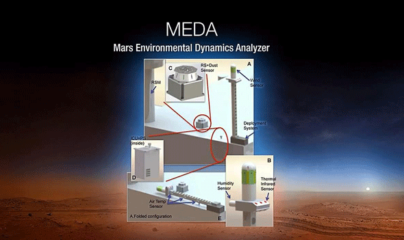 Анализатор окружающей среды MEDA будет заниматься сбором информации о климате в районе исследований.![]()