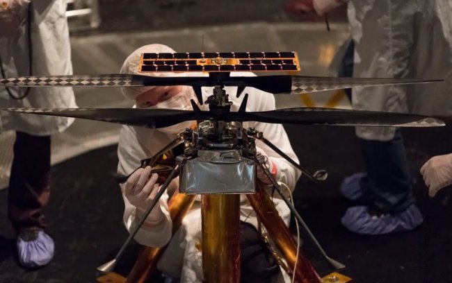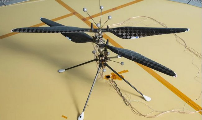Вертолет для исследования Марса изготовлен из 1500 деталей из углеродного волокна, авиационного алюминия, кремния, меди, фольги и пенопласта. Во время тестовых запусков его удалось поднять на 5 см от поверхности и довести время эксплуатации до одной полной минуты, и этого оказалось достаточно для сбора всех нужных данных.