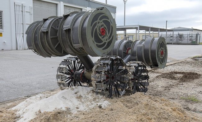 Для этого был создан робот RASSOR, вес которого примерно в половину меньше, чем ранее разработанные аналоги с похожими характеристиками. Чтобы копать, RASSOR использует два полых барабана, усеянных мелкими зубцами. Когда робот движется вперед, зубцы создают узкую щелевую траншею, а не глубокую дыру. Ключевая особенность RASSOR заключается в том, что барабаны вращаются в разных направлениях – это позволяет ему работать при низкой гравитации. Из полученной почвы добывается вода, которую можно не только пить, но и использовать для производства ракетного топлива.